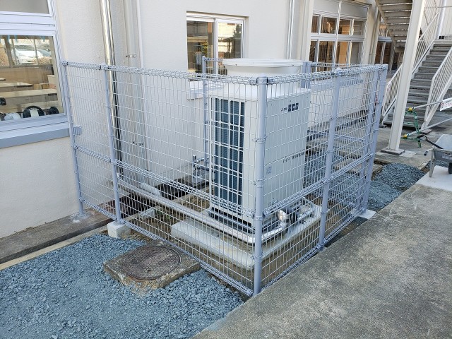 学校の設備廻りにフェンスを設置しました。